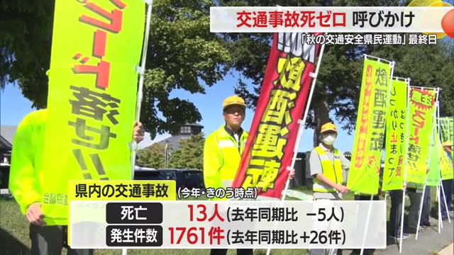 【山形】夕暮れ早まる秋 早めのライト点灯・反射材つけ明るい服装で“交通事故死ゼロ”目指す 天童市 9/30