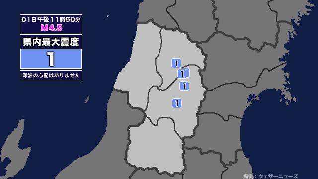 【地震】山形県内で震度1 宮城県沖を震源とする最大震度3の地震が発生 津波の心配なし 10/ 1