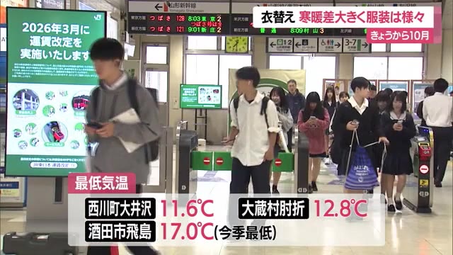 きょうは10月1日は「衣替え」。寒暖差が大きくなる中、JR山形駅では夏服や冬服などさまざまな服装で登校する生徒の姿が見られた。