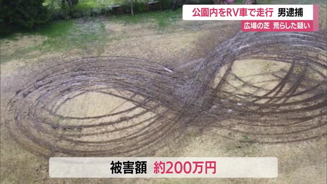警察によると、五十嵐容疑者は2025年4月13日午後1時ごろ~23日午前10時半ごろまでの間に、山辺町にある「大寺ふれあい公園」内をRV車で8の字に走り回り、広場の芝を荒らした疑いがもたれている。