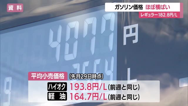 石油情報センターによると、9月29日時点の県内のレギュラーガソリンの平均小売価格は1リットルあたり182.8円で、前の週から0.1円値上がりした。