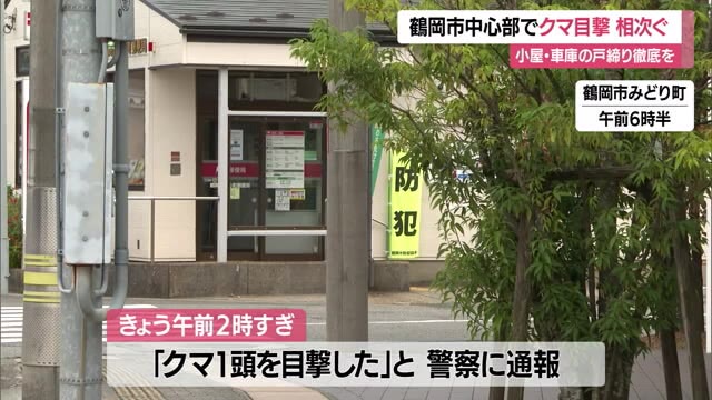 8日未明から朝にかけ、鶴岡市の中心部でクマの目撃が相次いでいて、市や警察が注意を呼びかけている。