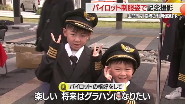 「(Q.パイロットの格好をして)楽しい。将来はグラハンになりたい。(Q.グラハンとは?)飛行機の誘導をしたりする人」