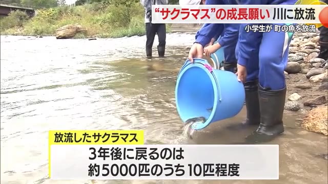 0.2%しか戻ってこないサクラマス 「3年後戻って来てね」本郷東小学校児童が放流 山形・大江町 10/14