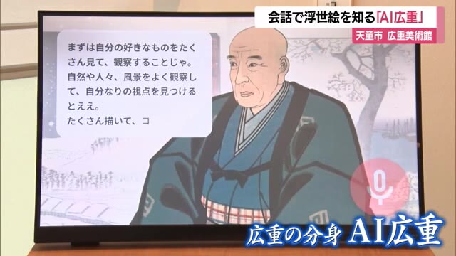 天童市の美術館で、江戸時代の浮世絵師・歌川広重の分身キャラクター「AI広重」が話題となっている。