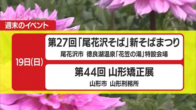 ■18日(土)、蔵王坊平で「ファミリーフェスティバル」が開催される。 山形市出身のアスリート・加藤条治さんが来場し、加藤さんと秘密の勝負ができる。また、中学生には体の使い方を学ぶプログラムが用意されている。 ■19日(日)、尾花沢市で「新そばまつり」が開かれる。 「最上早生」を使った打ちたて・ゆでたての"新そば"の味を楽しめるほか、そば打ち体験教室なども行われる。
